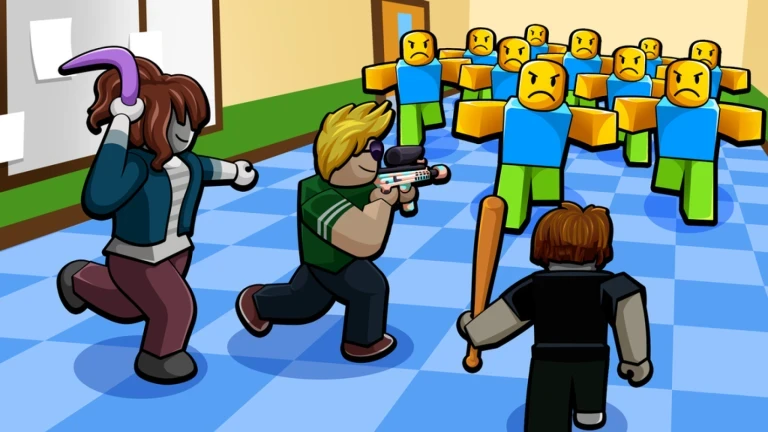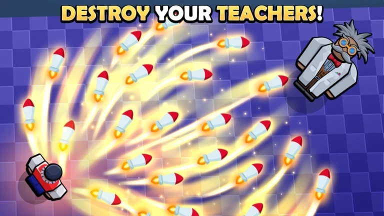 Fight waves of enemies in different classrooms — either go solo or team up with friends. Choose from Classic mode or endless wave survival for longer challenges
