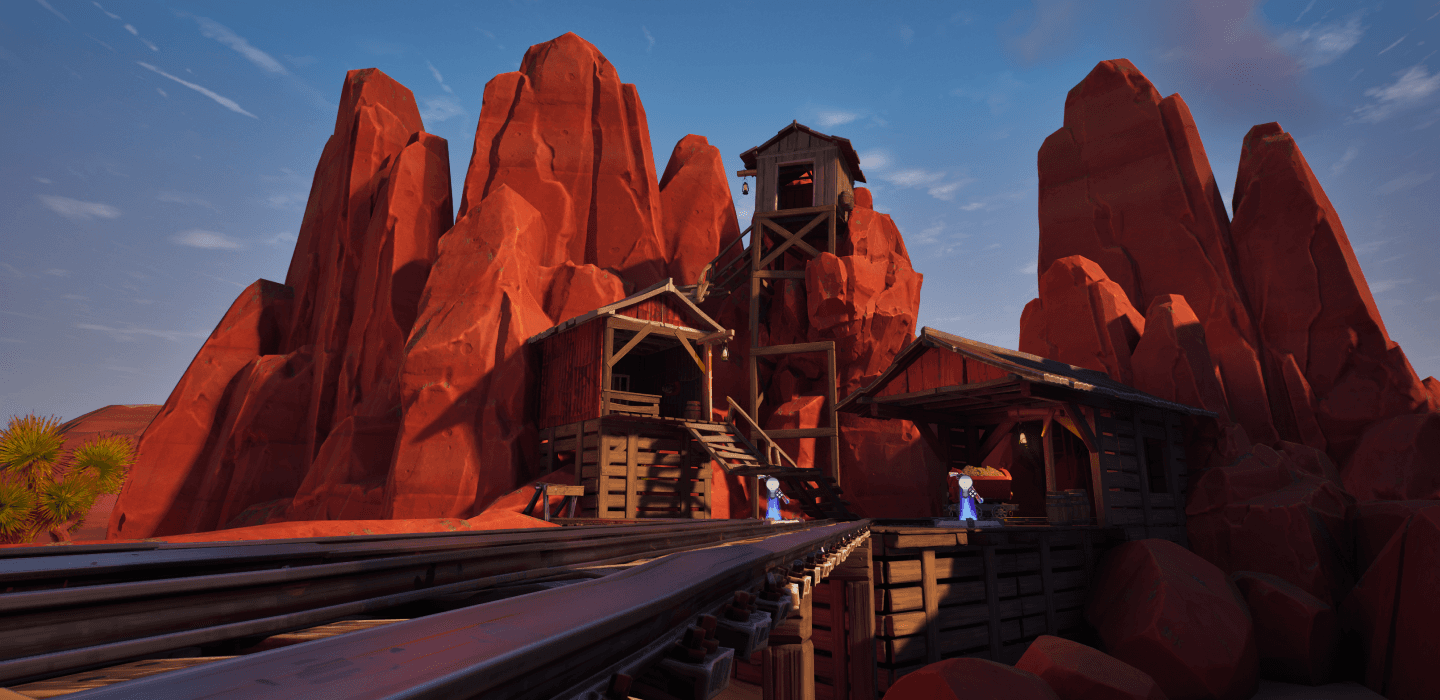 Inspired by the popularity of skill training maps in the first weeks of UEFN, the team settled on an initial concept to help Fortnite players train for end-game Battle Royale 1V1 showdowns. The western theme gave a chance for the team to have fun with a theme lending itself to a focused high-quality scope of effort. The game is now live in Fortnite.